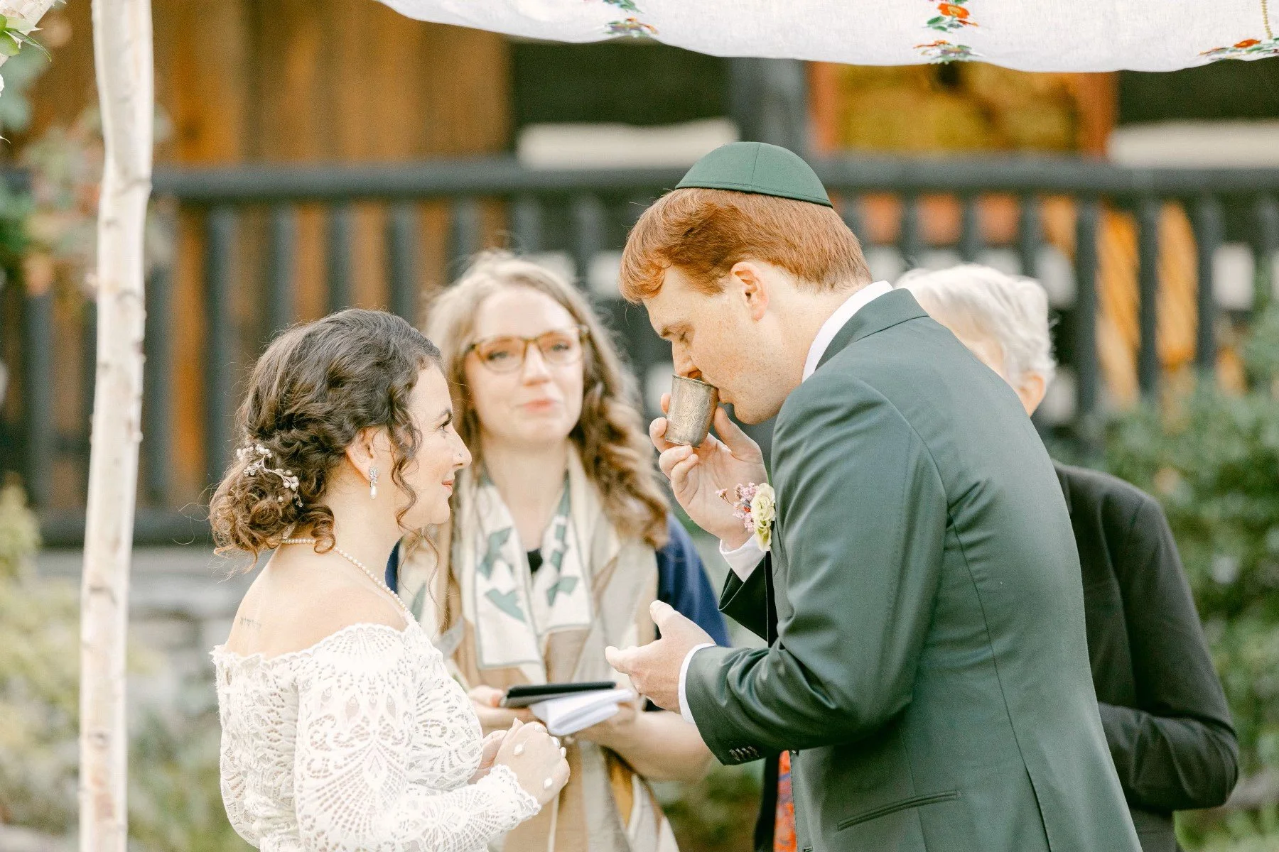 A fun rabbi “oops” - the seventh blessing didn’t make it into the script for my Kindle, so I hand-wrote it on a little paper, which greatly amused Mother Barbara. I didn’t, however, transcribe the translation, which put my live Hebrew-translation skills to the test under the chuppah. I hope nobody noticed, and if they did, they didn’t mind!